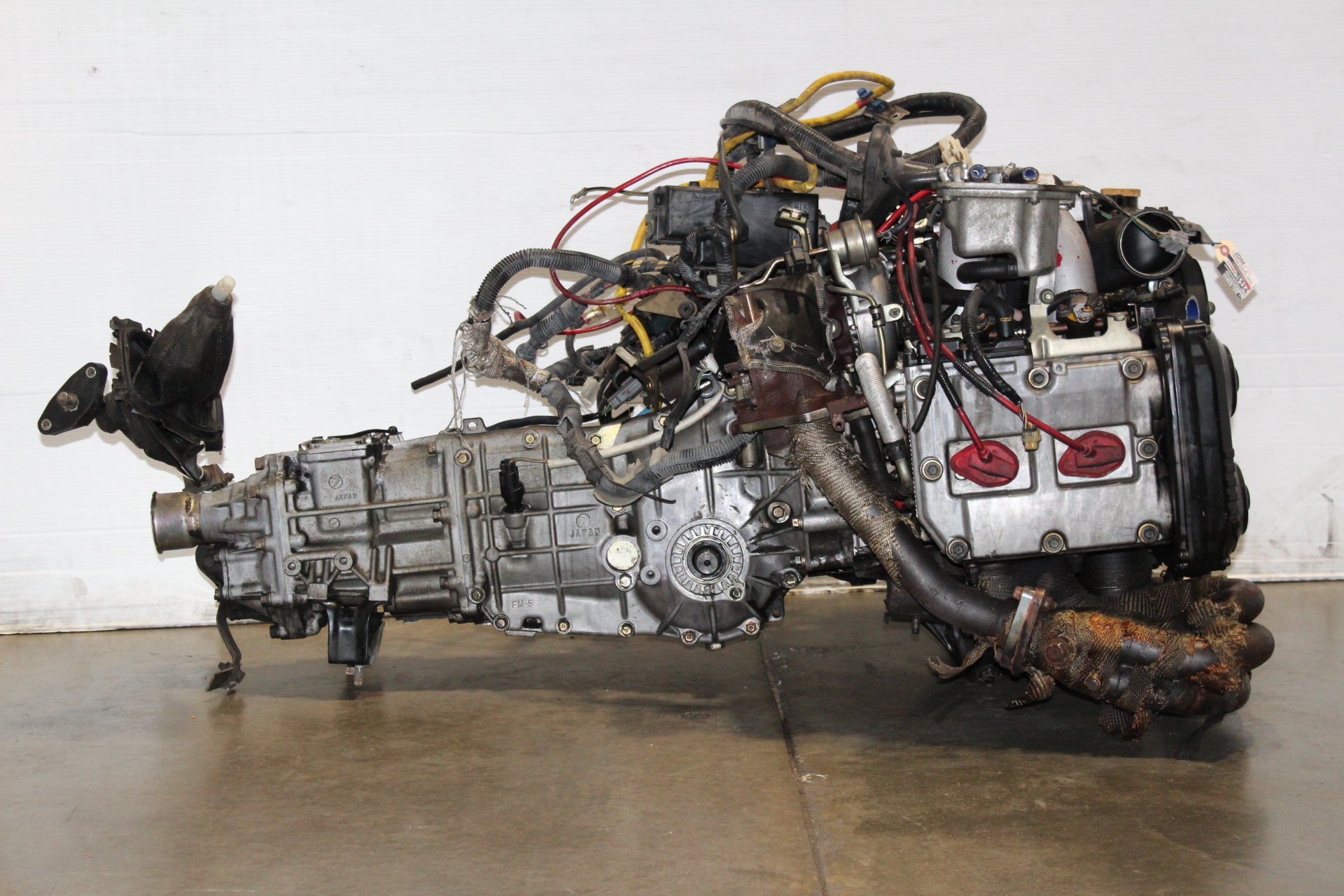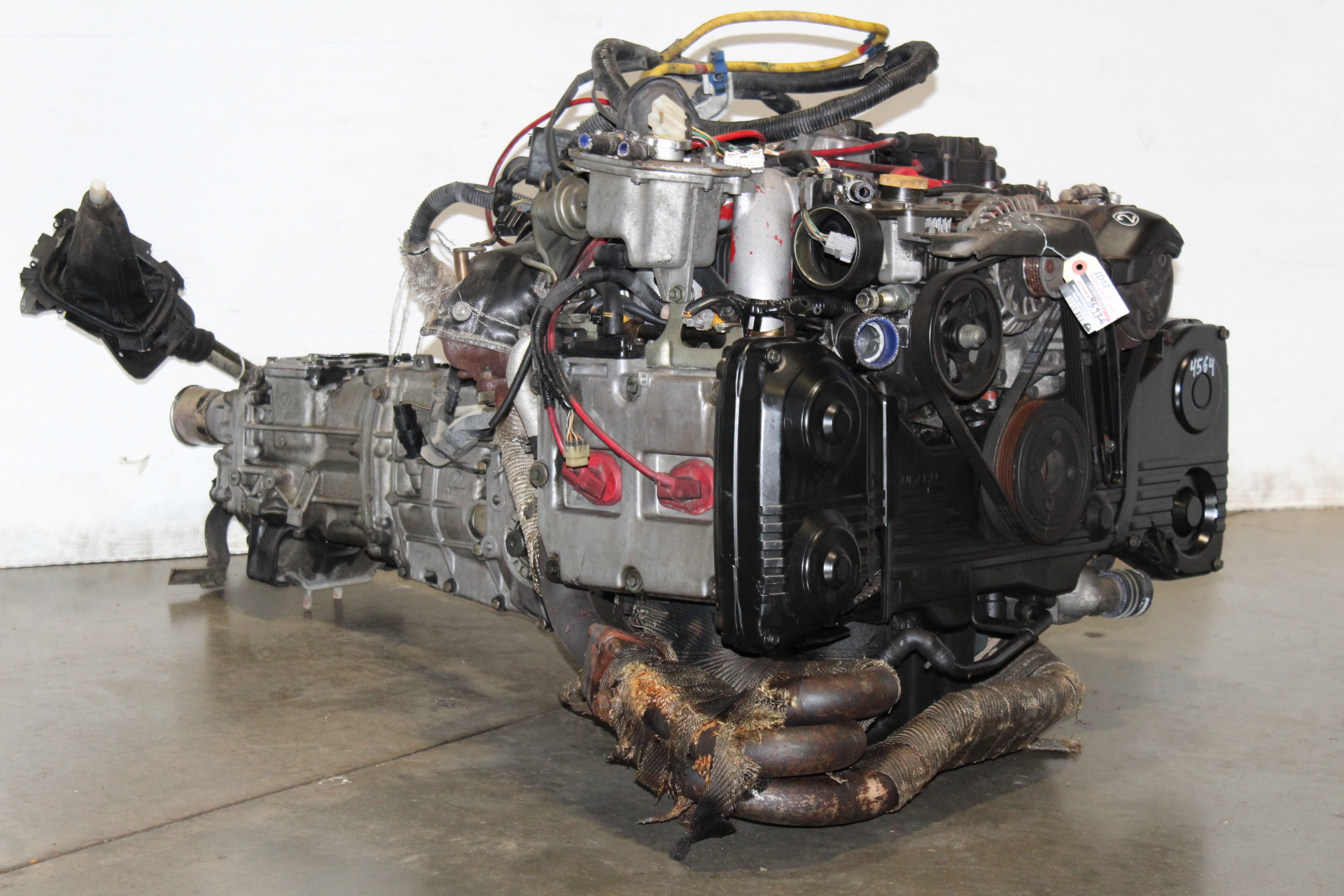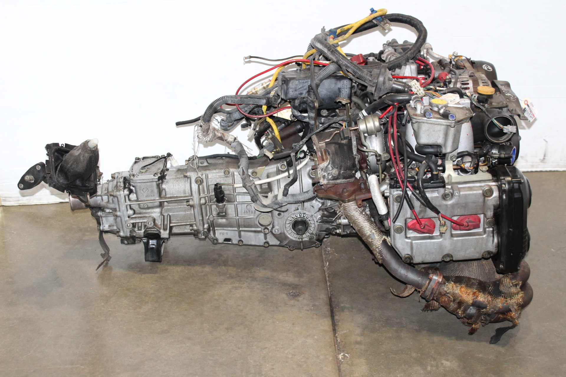 JDM SUBARU IMPREZA WRX GC8 STI V6 EJ20 DOHC TURBO ENGINE 5SPEED AWD TRANSMISSION WITH JDM SYMS RACING EXHAUST MANIFOLD HEADER 4-1 FOR SALE
