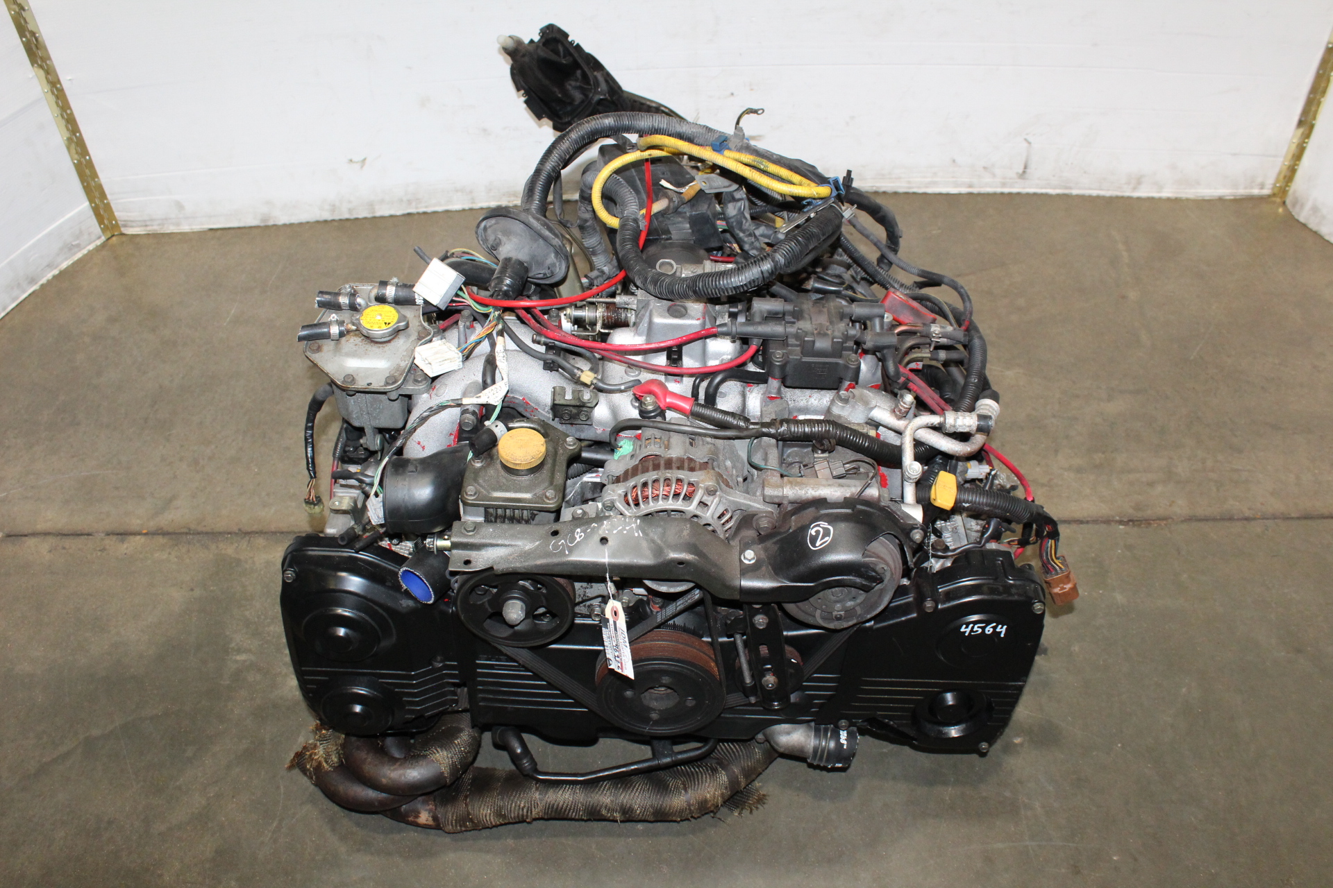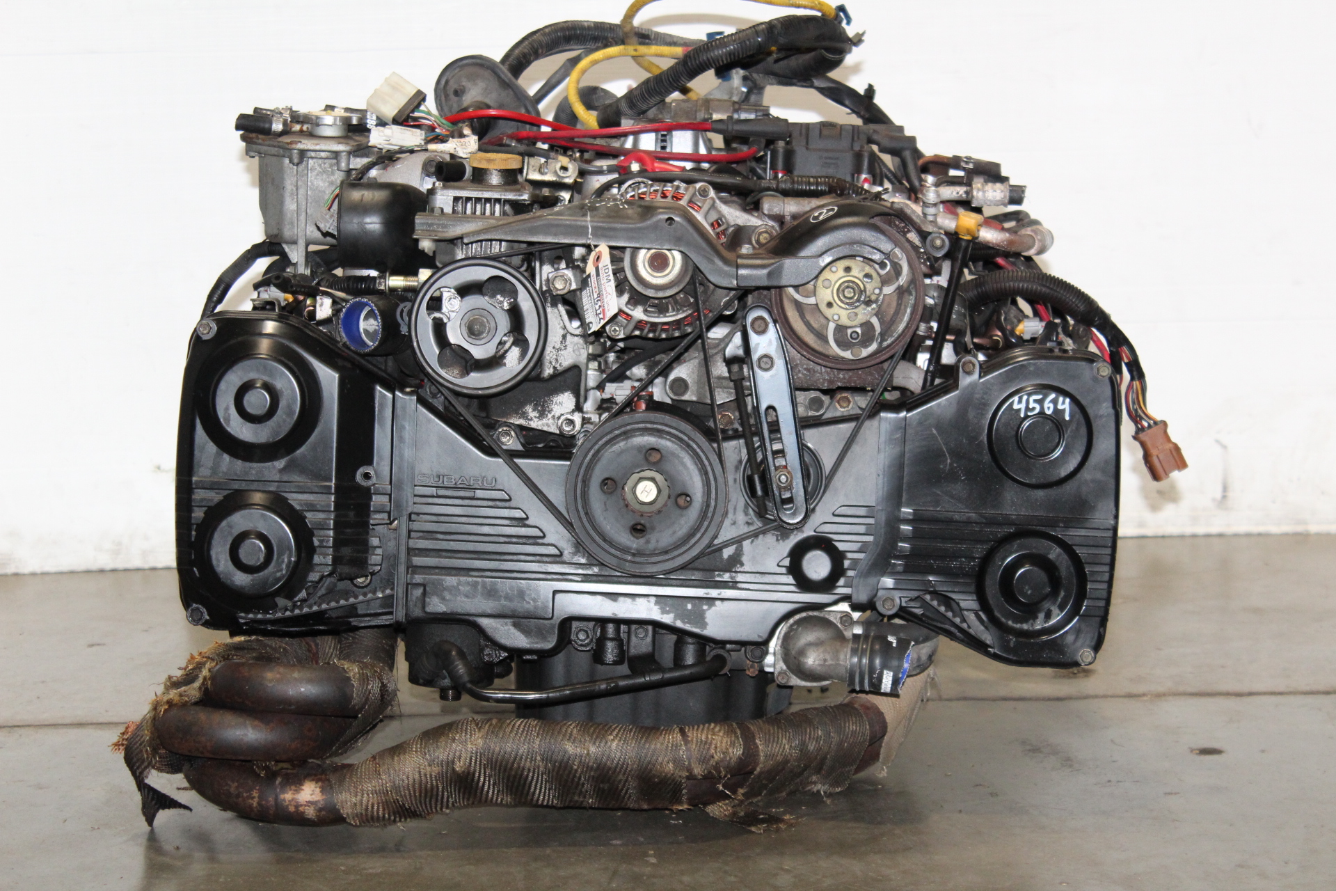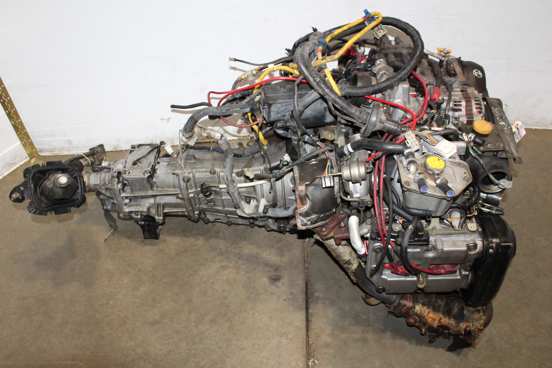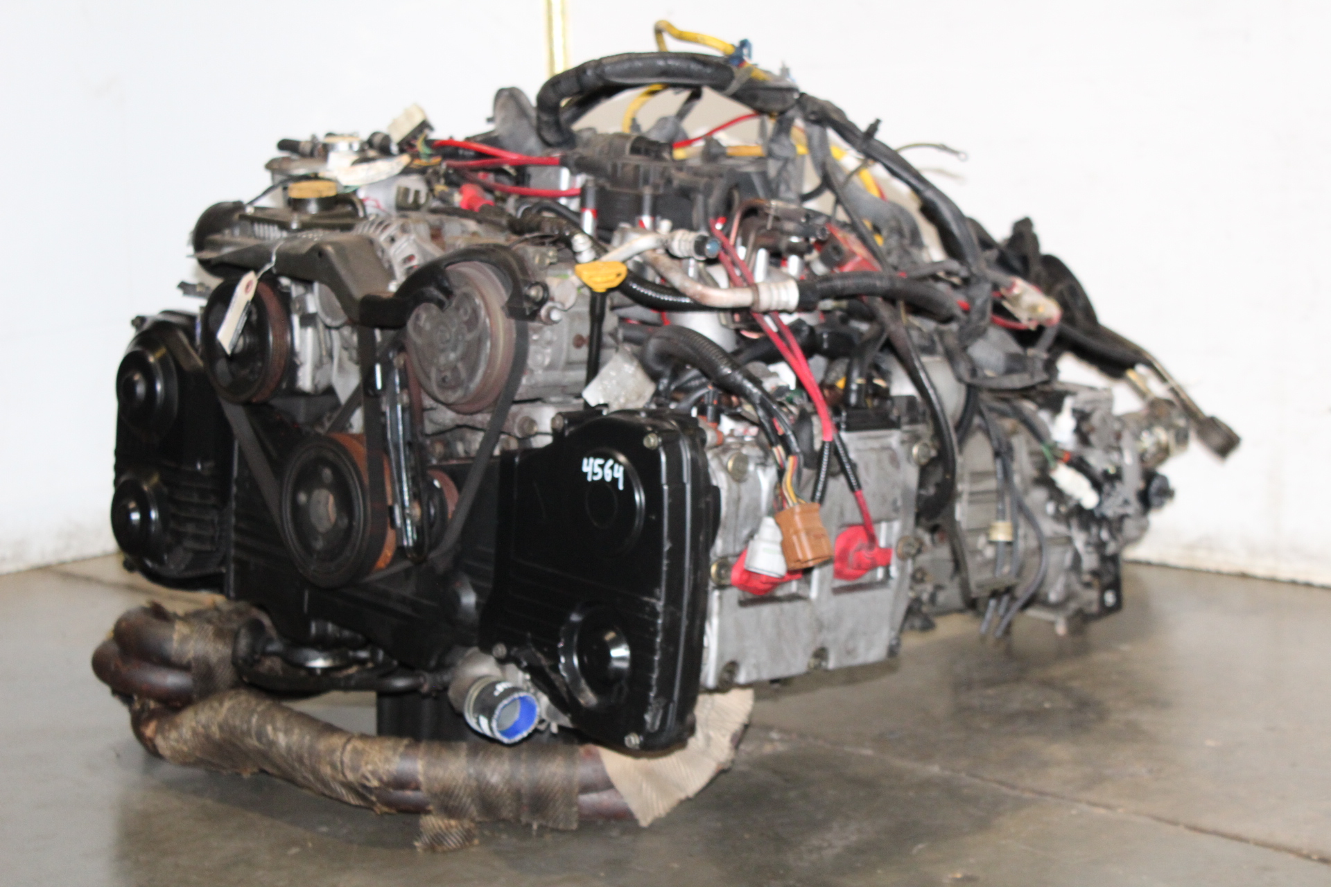 JDM SUBARU IMPREZA WRX GC8 STI V6 EJ20 DOHC TURBO ENGINE 5SPEED AWD TRANSMISSION WITH JDM SYMS RACING EXHAUST MANIFOLD HEADER 4-1 FOR SALE